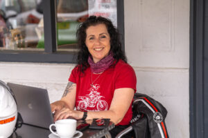 She is not a riding instructor. Her work focuses on the mental and emotional side of motorcycling – the part that impacts how well riders learn, respond and progress.
